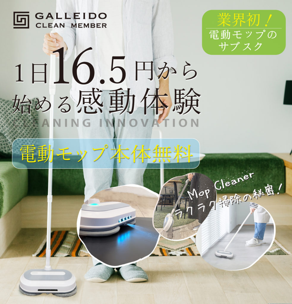 GALLEIDO電動モップは、サブスクで提供される電動モップです。「GALLEIDO CLEAN MEMBER」として、本体無料で月々のレンタル料を払うだけで使い続けることができます。