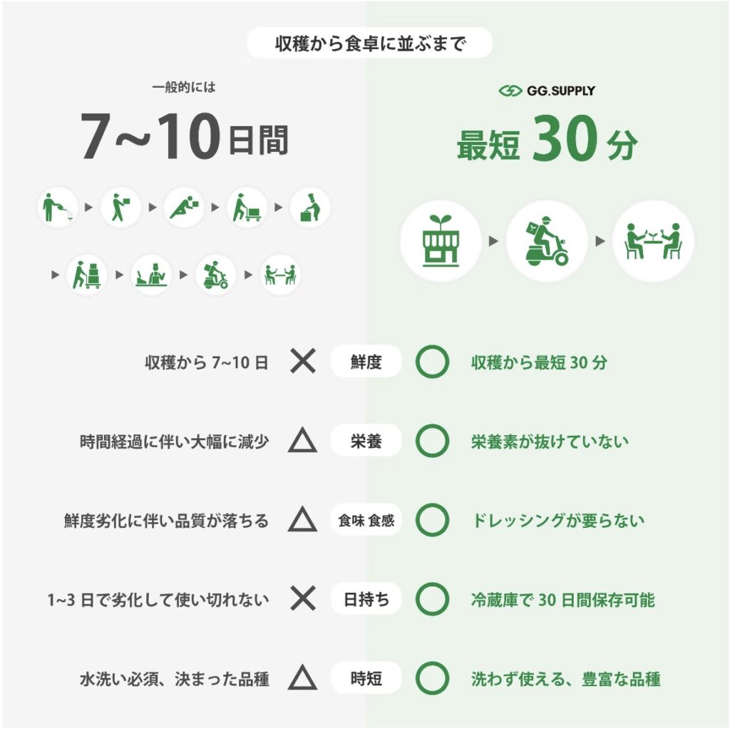 GG.SUPPLY(ジージーサプライ)は都会の畑から収穫から30分で食卓へお届けできます。