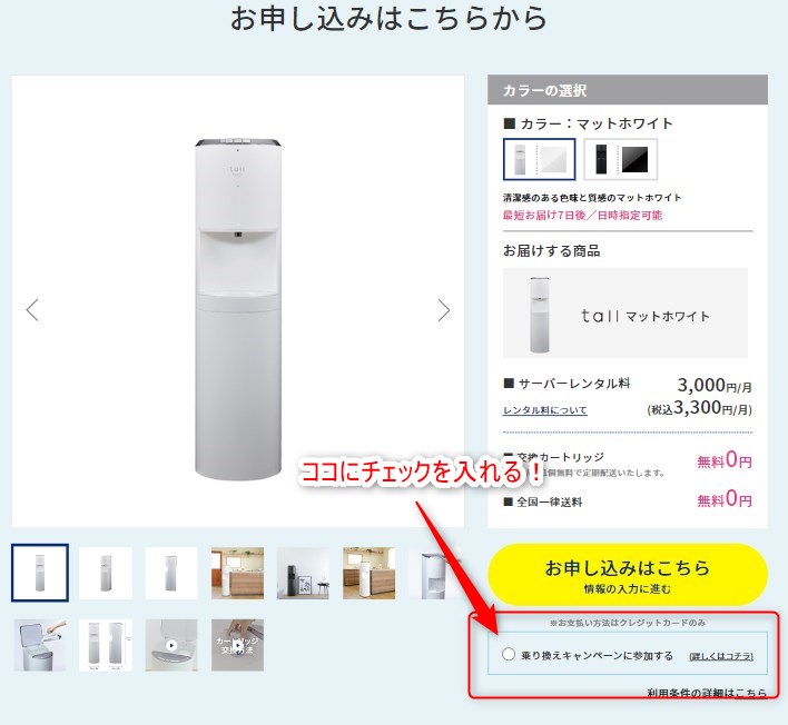 浄水型ウォーターサーバー乗り換えキャンペーンの申込み手続き応募方法