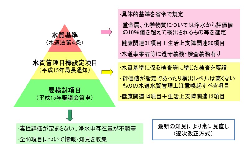 以下は、厚生労働省が対策している水道基準です。これを見てわかるとおり、常に最新の知見が適用されるようになっているため、浄水型ウォーターサーバーもフィルターなどは進化し続けているのです。