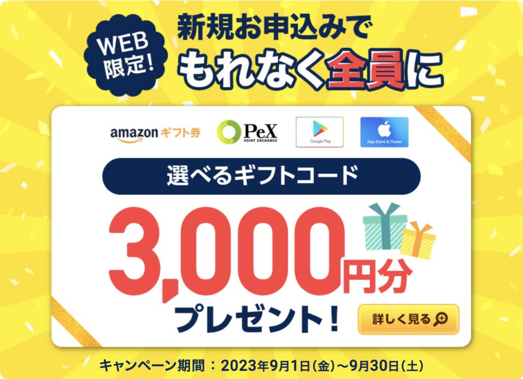 オーシャン(OCEAN)のキャンペーンは、Web限定で新規お申込みでもれなく全員に3000円分のギフトがプレゼントされます。このチャンスをお見逃しなく!